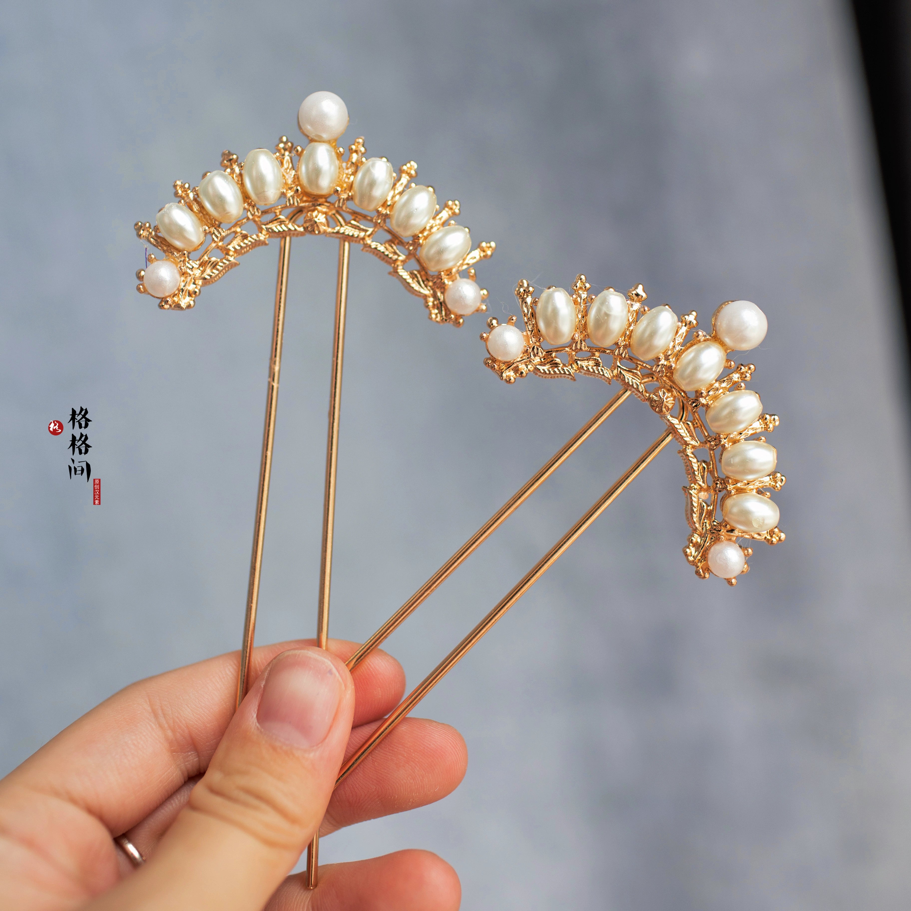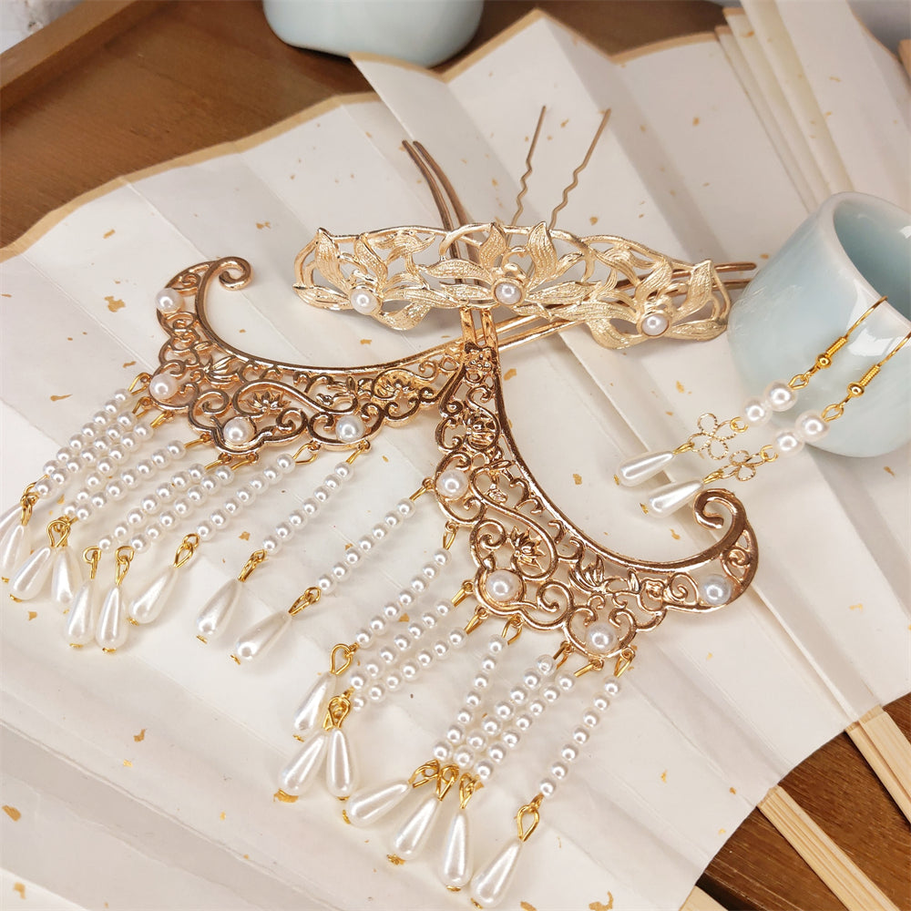Yi Lang 依兰 Ylang Flower Tang Ming Buyao Dangling Pearl Curved Hair Pin Set