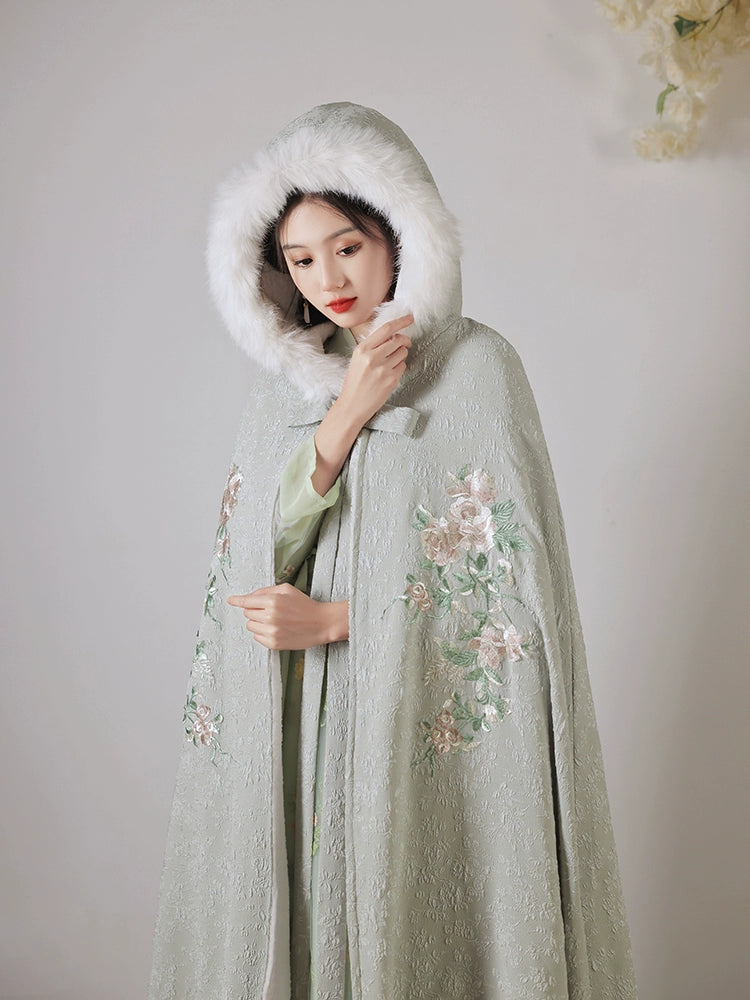 Mao Dou 毛豆 Edamame Embroidered Winter Fur Doupeng Cloak