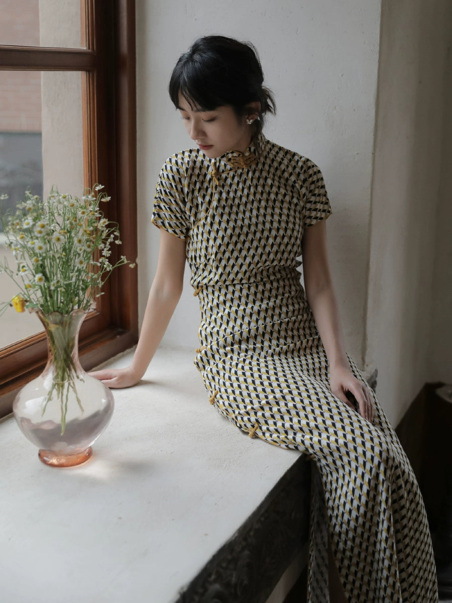Li Sha 丽莎 Lisa 1940s Midcentury Geometric Sleeveless Daily Qipao