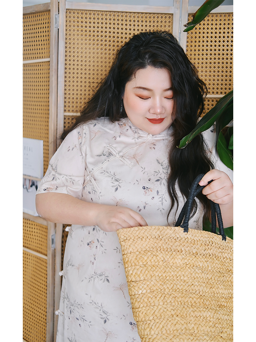Hei Mei 黑莓 Blackberry New Chinese Style Plus Size Jacquard Slip Dress & Qipao Jacket Set