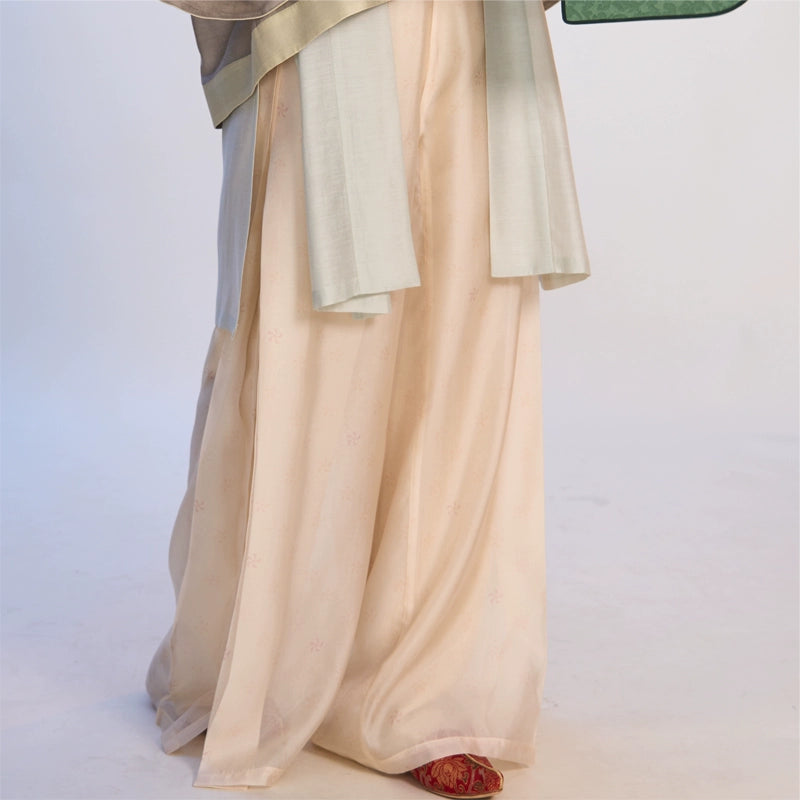 Yimeng Huayu 遗梦花语 A Flower's Language Modernized Ming Mamian Wide Legged Trousers & Drape Top Set