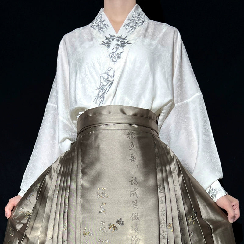 Piao Zheng 飘筝 Floating Kites Modernized Ming Yunjian Cloud Collar Long Top & Mamian Skirt Set