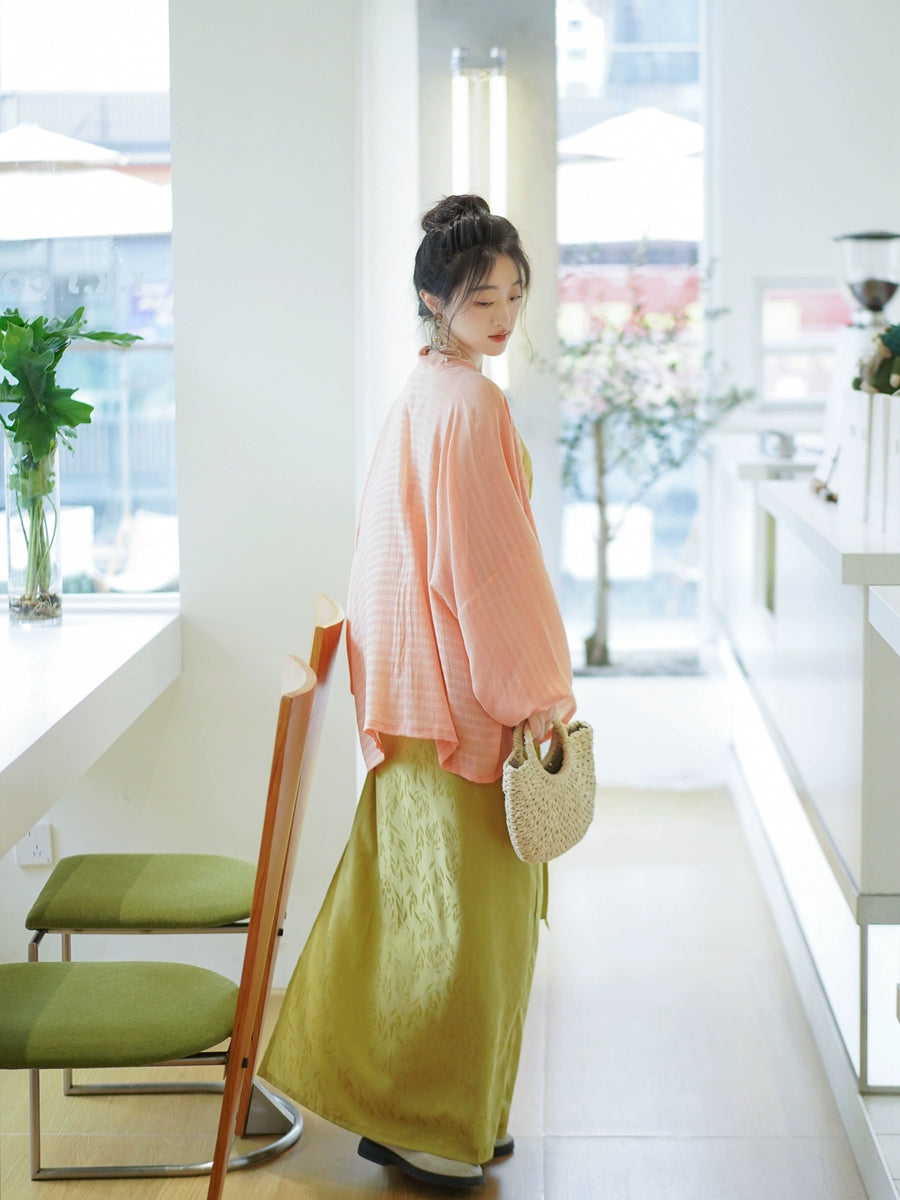 Jüzi Qishui 橘子汽水 Orange Soda Modernized Song Dynasty Beizi & Double Layered Trousers Set