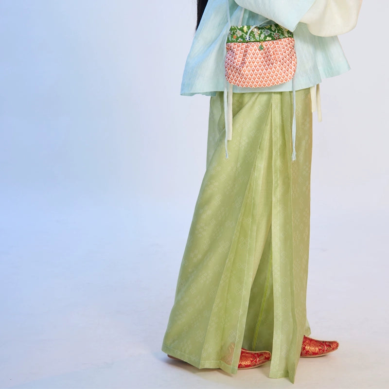 Yimeng Huayu 遗梦花语 A Flower's Language Modernized Ming Mamian Wide Legged Trousers & Drape Top Set
