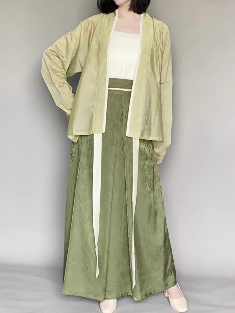 Yazhu 雅竹 Serene Bamboo Grove Song Dynasty Plus Size Feijixiu Top & Sanjianqun Skirt Set