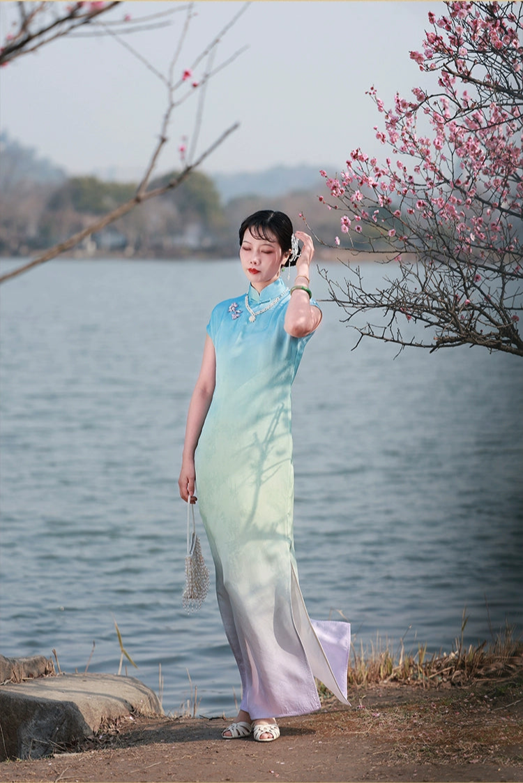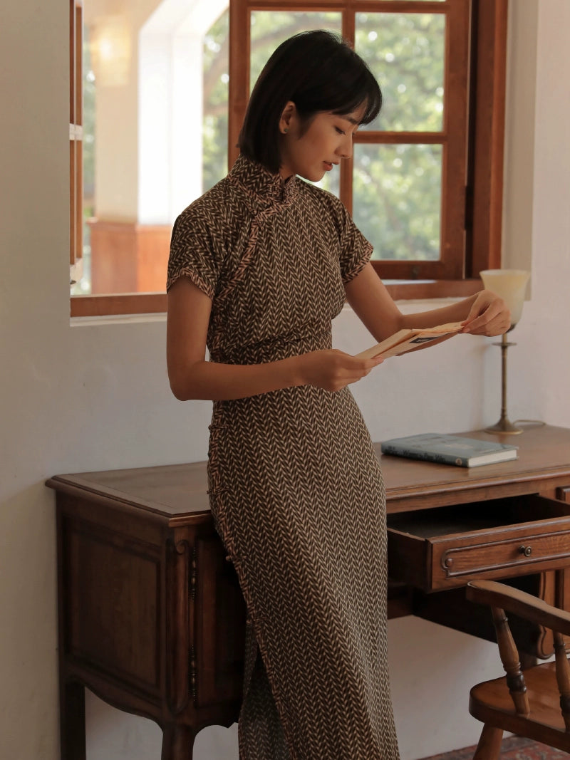 Suihe 穗禾 Wheat Stalk 1930s Art Deco Chiffon Short Sleeve Qipao