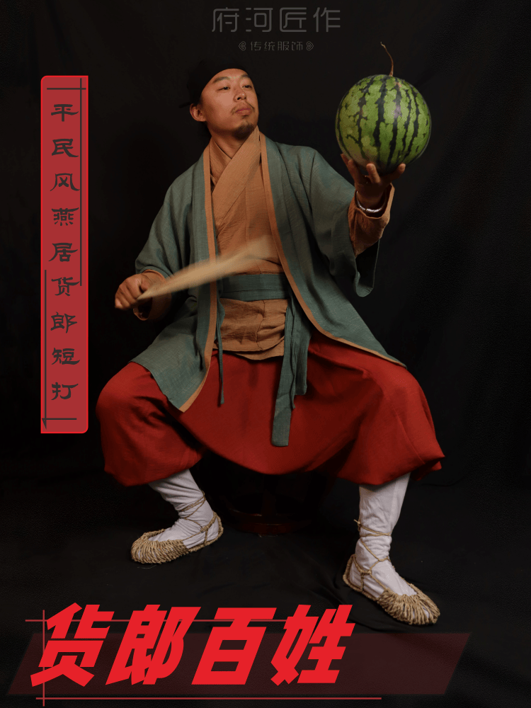 Bai Xing 百姓 Common People Song Ming Laborer's Cross Collar & Trousers Summer Set
