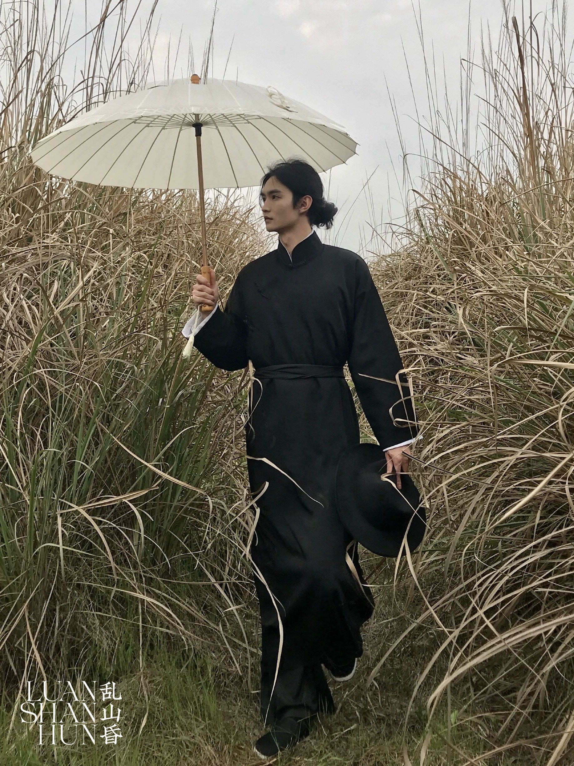 Luan Shan 乱山 Chaotic Mountain Modernized Republican Era Belted Changpao Mandarin Collar Robe