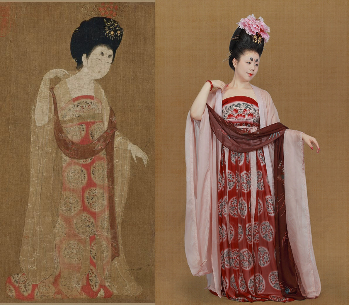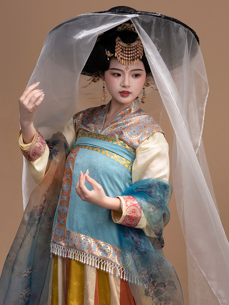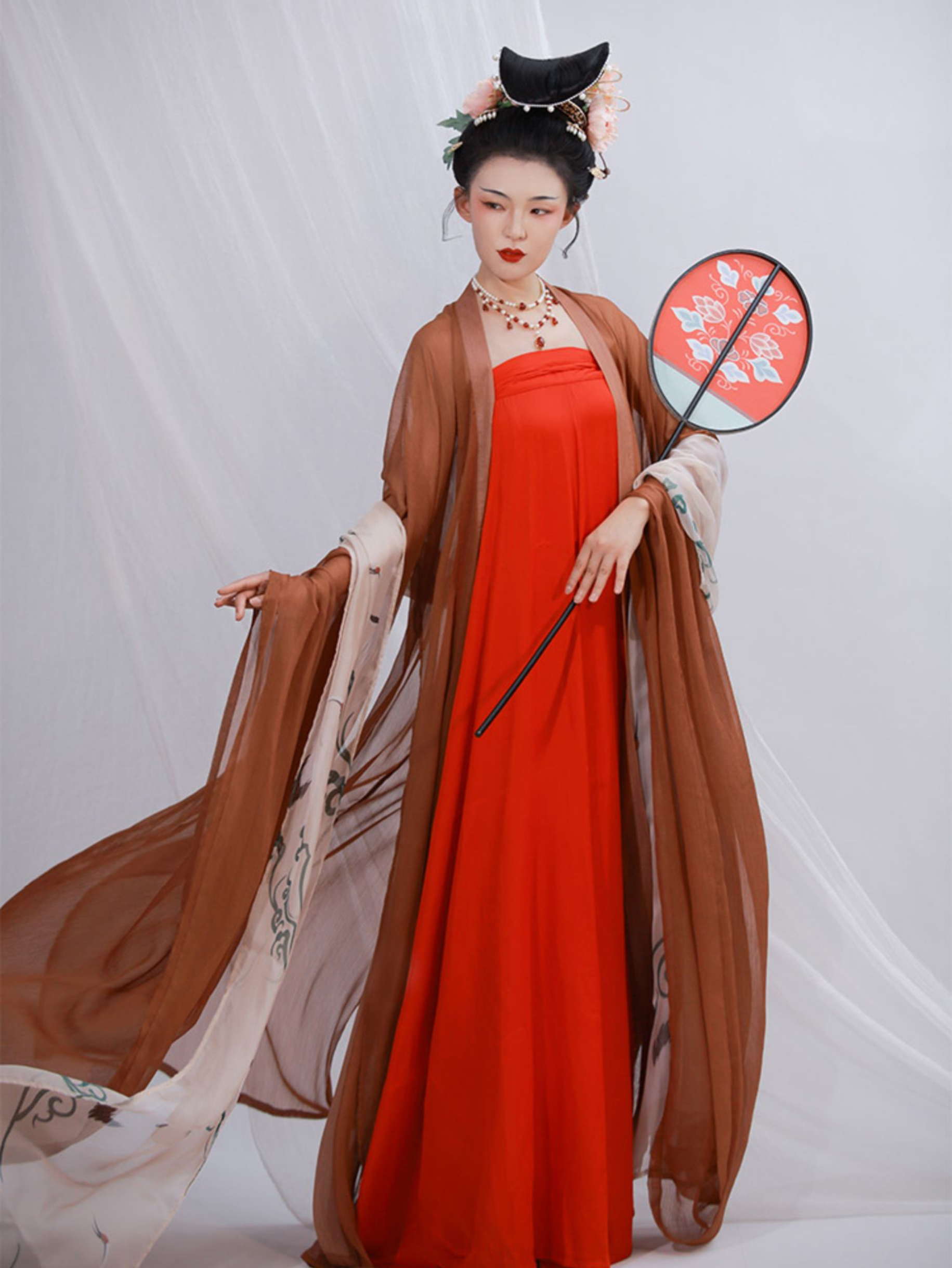Chen Sha 辰砂 Cinnabar Early Tang Dynasty Restoration Chuiling Beizi Jacket & Poqun Qixiong Skirt Set