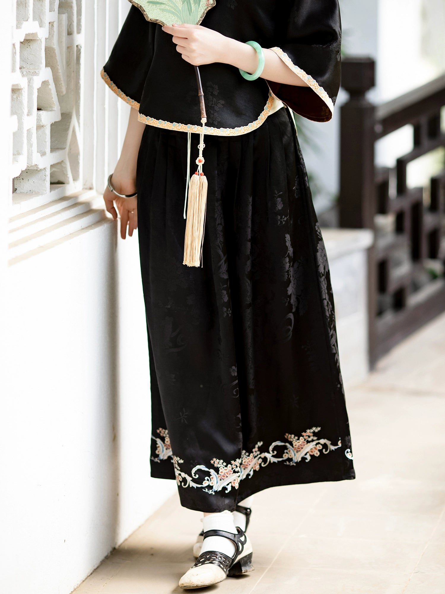 Lili Su 栗栗苏 Chestnut Candy Modern Weijin Quling Curved Collar Jacket & Midi Skirt Set