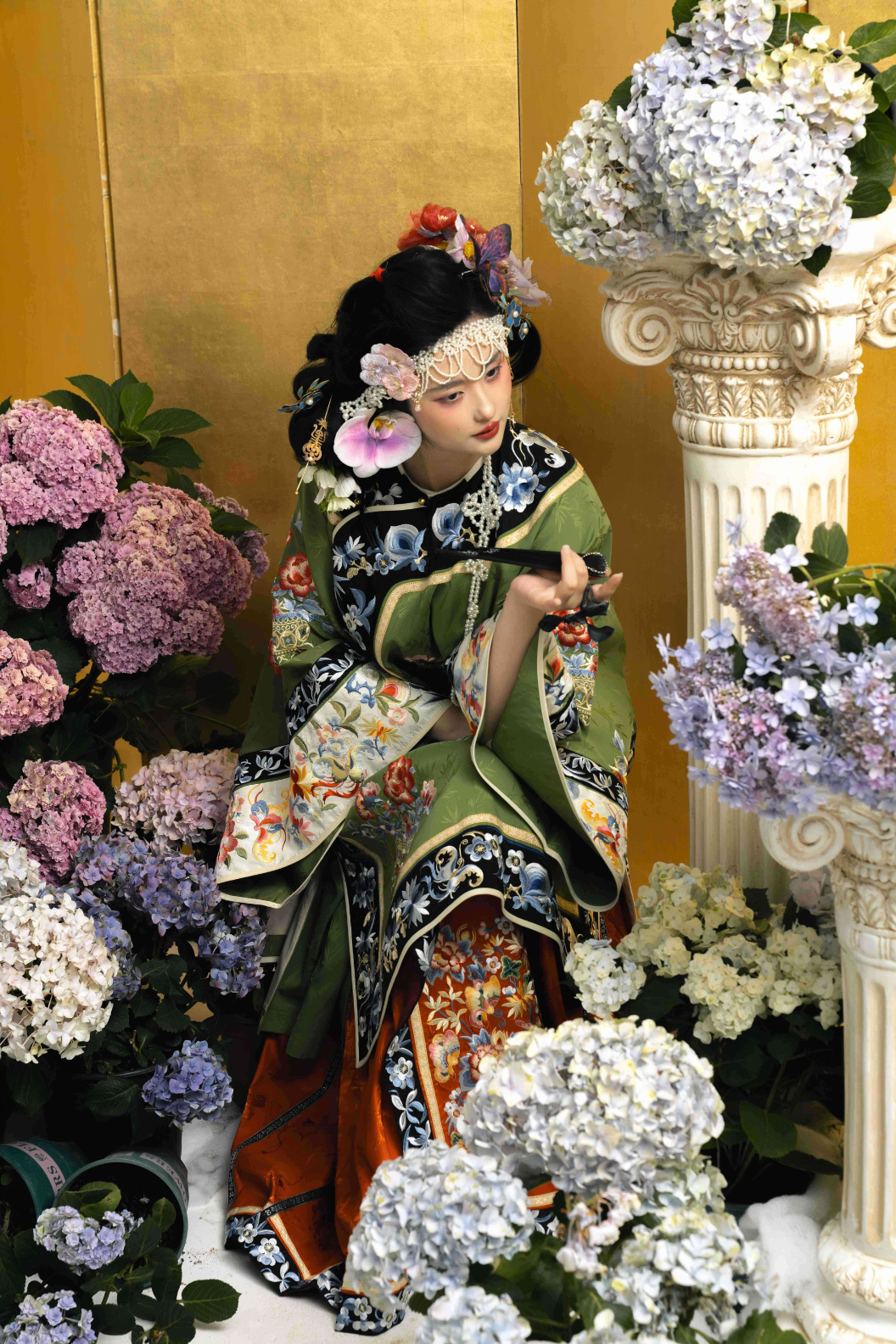 Jing Wen 静雯 Qing Dynasty Han Woman's Cloud Collar Embroidered Porcelain Top & Mamian Set
