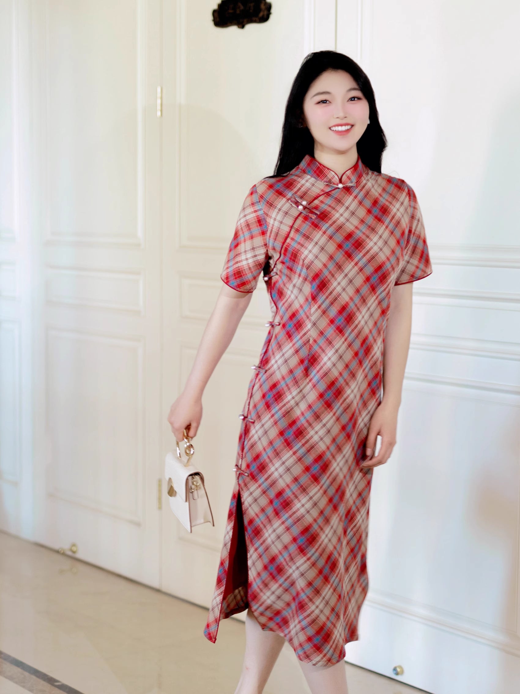 Lunyi Caocha 薰衣草茶 Lavender Tea 1940s Inspired Plaid Cashmere Wool Qipao & Cropped Blazer Set