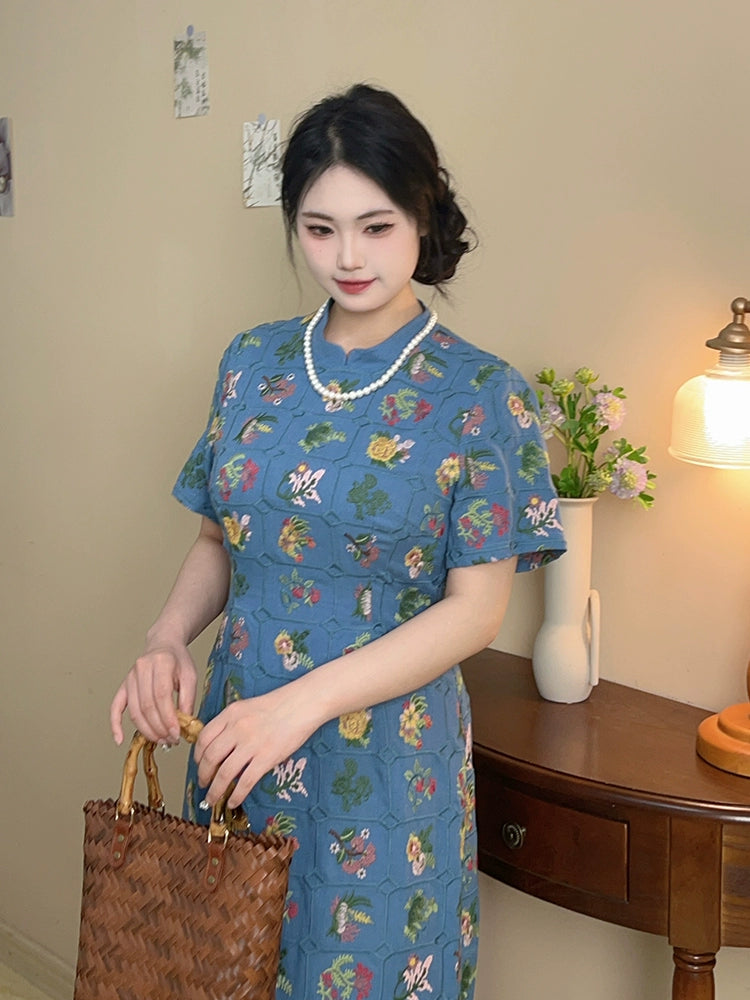 Mu Chun 沐春 Spring Cleaning Plus Size Vintage Inspired Floral Quilt Embroidered Short Sleeve Qipao