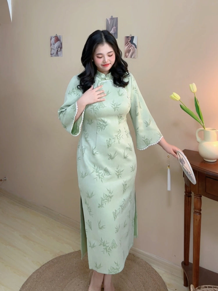 Ye Ruo 叶若 Fresh Bamboo Shoots 1920s Inspired Plus Size Scallop Sleeve Qipao