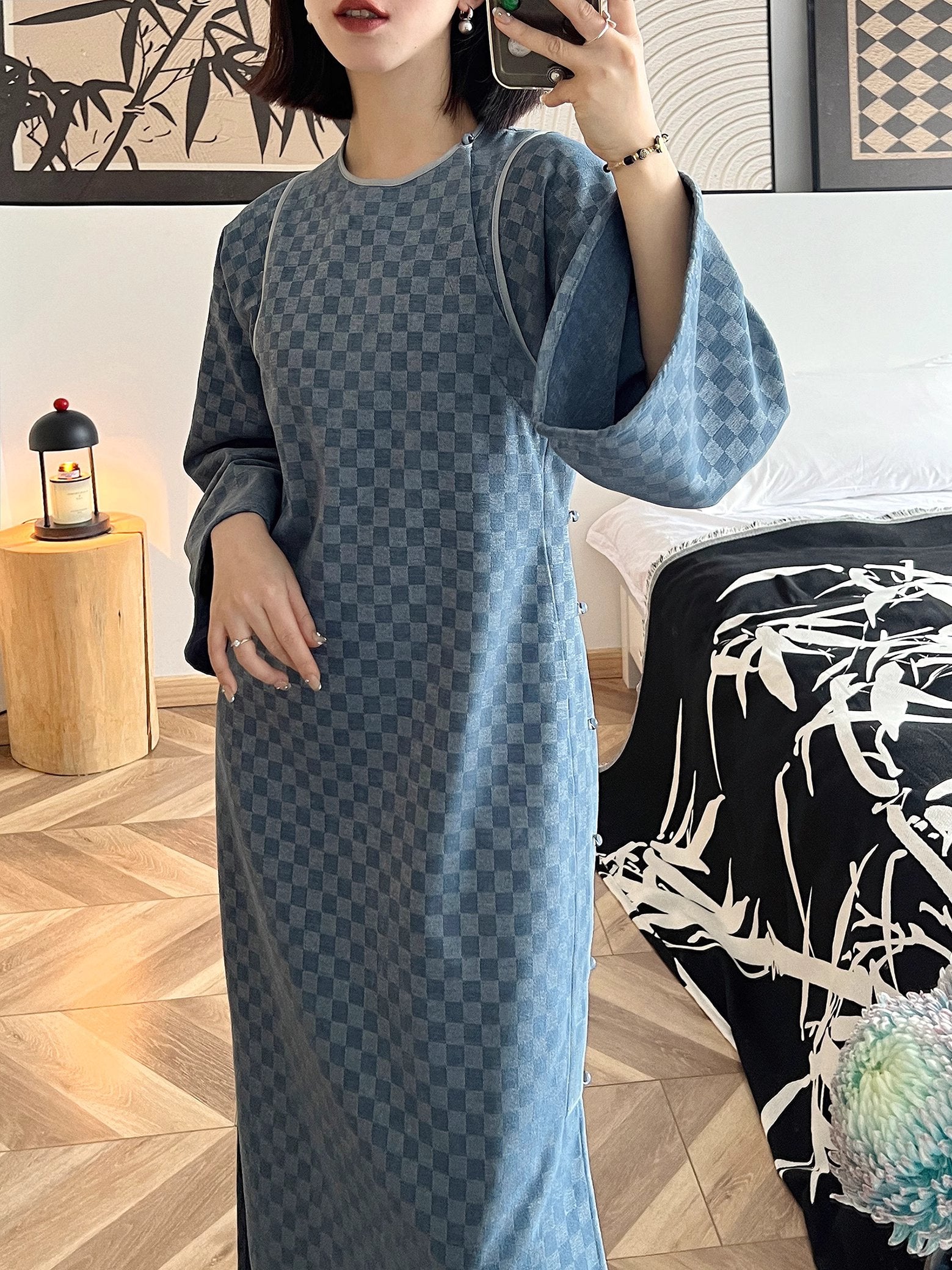 Lan Diao 蓝调 Everyday Blues Modernized Cotton Denim Long Sleeve Qipao