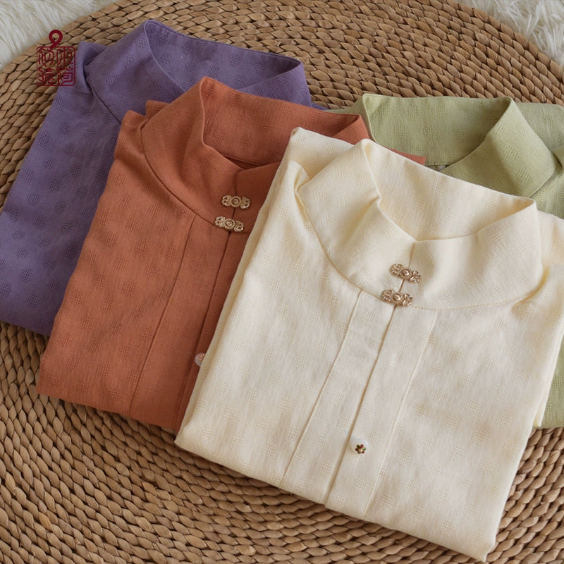 Macaron 马卡龙 Ming Dynasty Pure Cotton Standing Collar Daily Summer Shirt