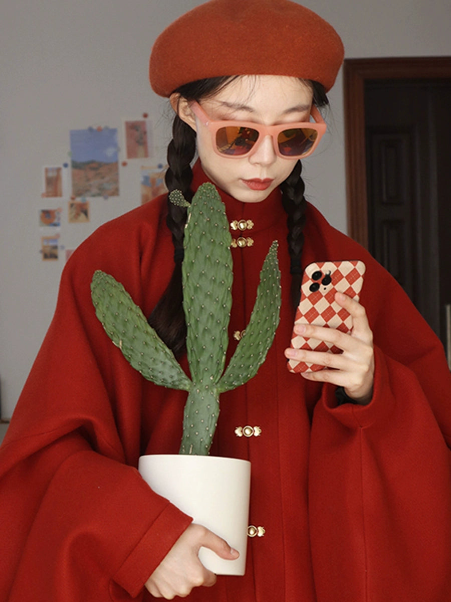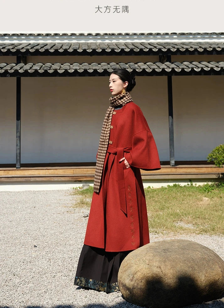 Yu Nian 余年 Longevity Modernized Ming Dynasty Pure Wool Winter Square Collar Trench Coat & Mamian Set