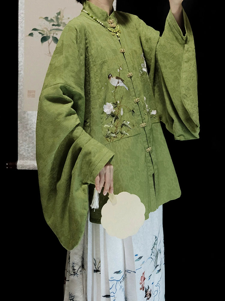 Ming Yun 明韵 Embroidered Liling Duijin Pipa Sleeve Cotton Ao Shirt