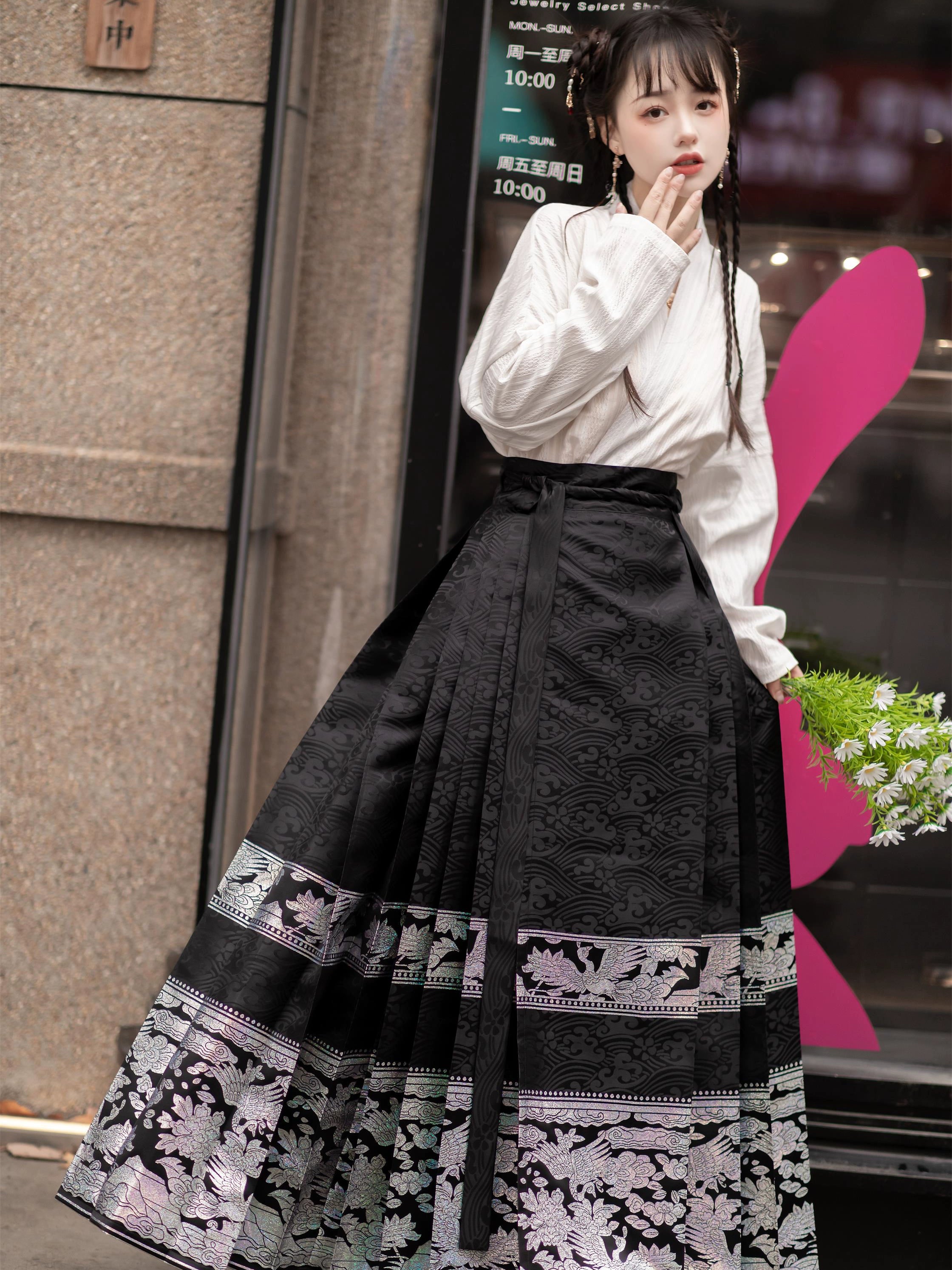 Huan Ying 幻影 Phantom Modernized Ming Dynasty Changshan Top Bijia Vest & Mamian Skirt Set
