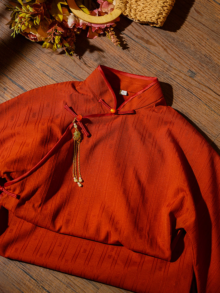 Wumei 妩媚 Charming Modernized Ming Plus Size Cotton Standing Collar Top & Midi Mamian Skirt Set