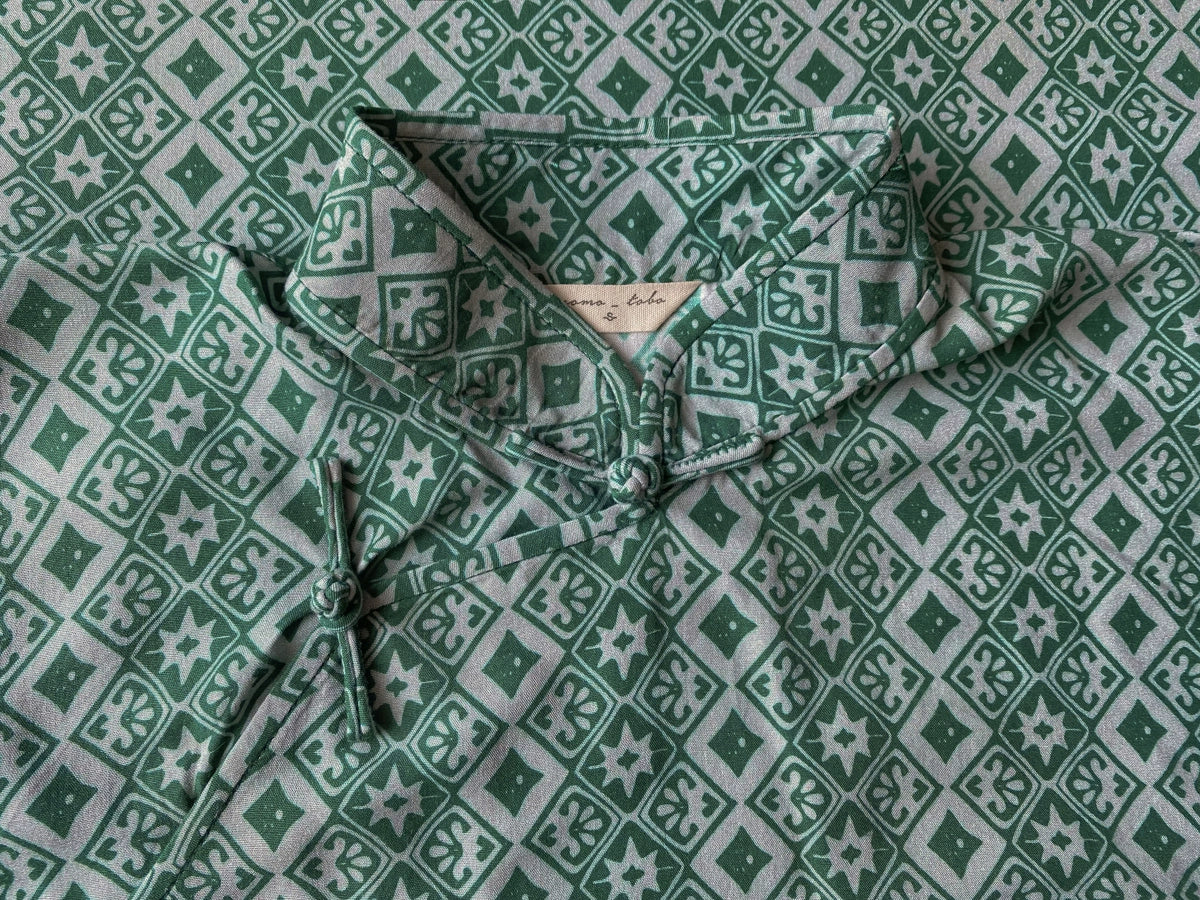Muli Ke 牡蛎壳 Oyster Shell Republic of China Art Deco Tencel Linen Cap Sleeve Qipao