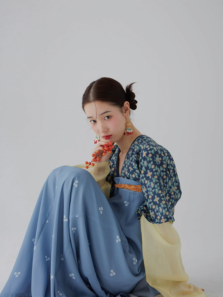 Chuju Lian 菊花链 Daisy Chain Reversible Cotton Modernized Ming Pipa Sleeve Top & Skirt