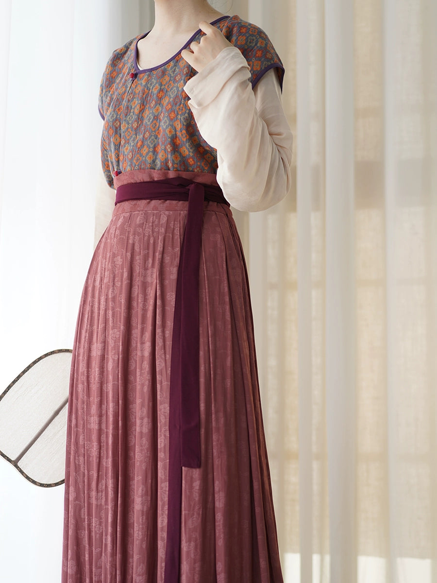 Jing Jie 荆芥 Cat Mint Early Tang Cotton Jacquard Banbi & Zhequn Skirt Ruqun Set
