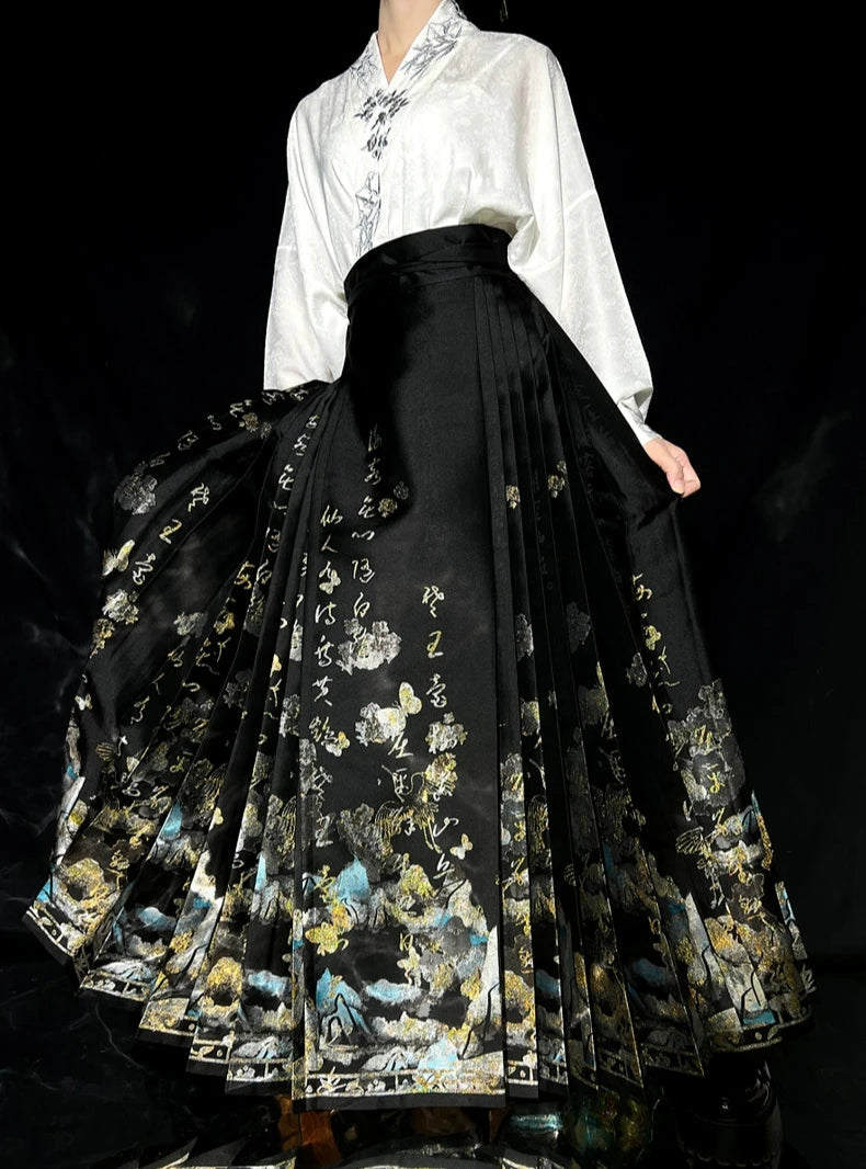 Jiang Shang Yin 江上吟 Song on the River Ming Dynasty Calligraphy & Mountains Mamian Skirt