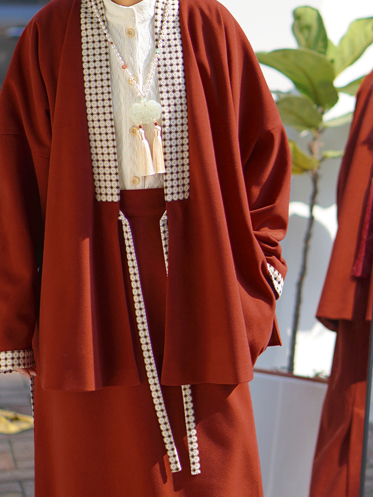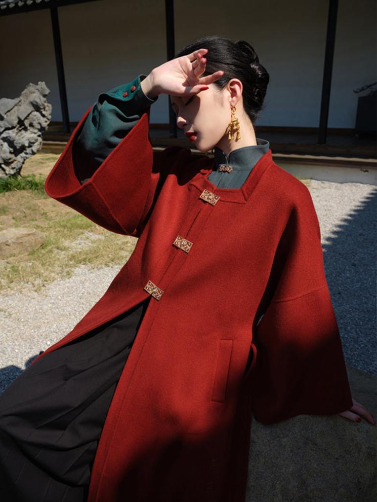 Yu Nian 余年 Longevity Modernized Ming Dynasty Pure Wool Winter Square Collar Trench Coat & Mamian Set
