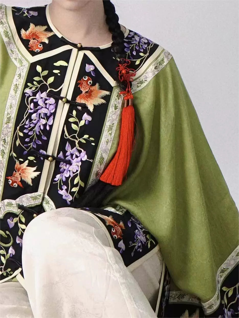 Lian Yi 涟漪 Pond Ripples Qing Dynasty Han Woman's Embroidered Goldfish Round Collar Magua & Pants