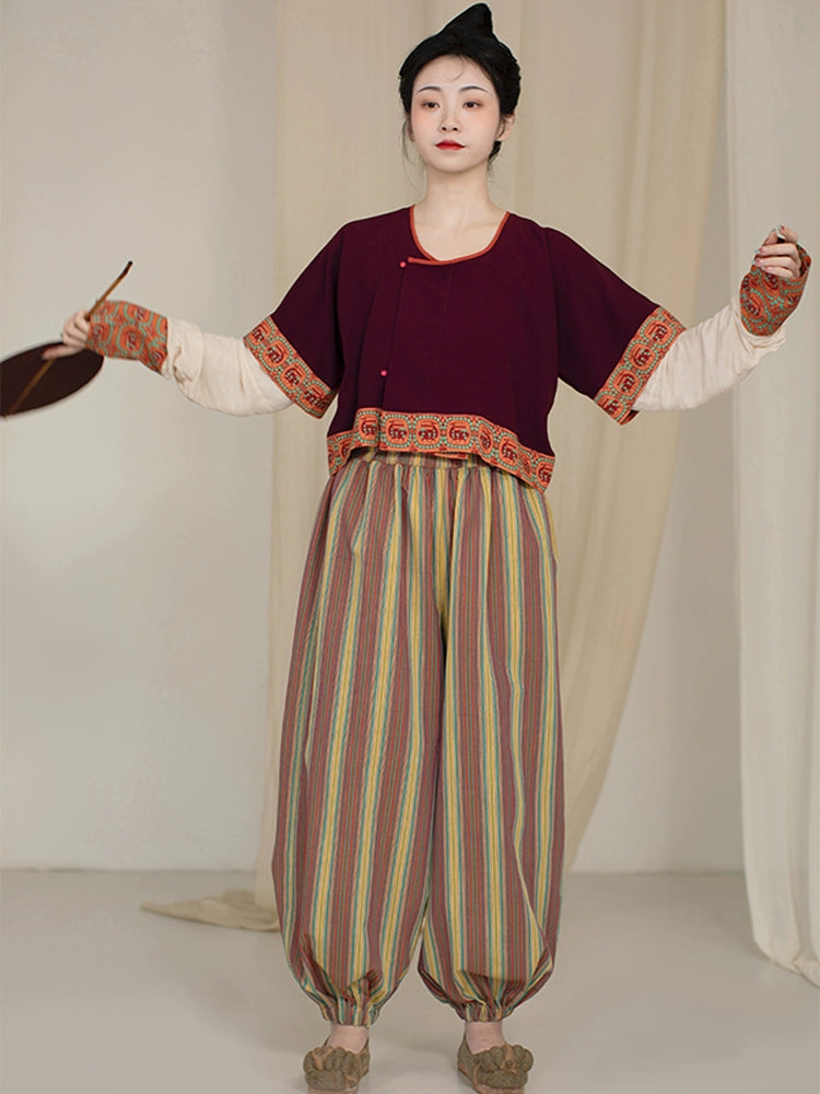 Yoyo 呦呦 Oh Deer! Early Tang Dynasty Beizi Jacket & Cotton Lantern Pants Set