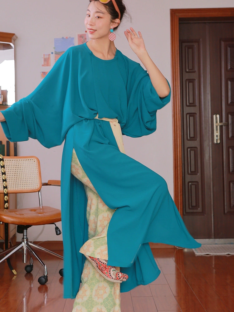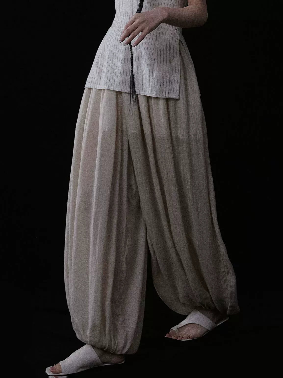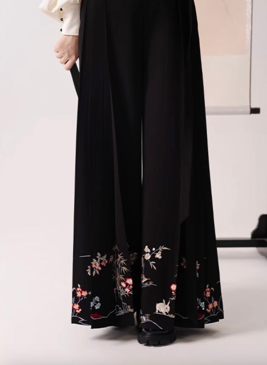 Yimeng Huayu 遗梦花语 A Flower's Language Modernized Ming Mamian Wide Legged Trousers & Drape Top Set
