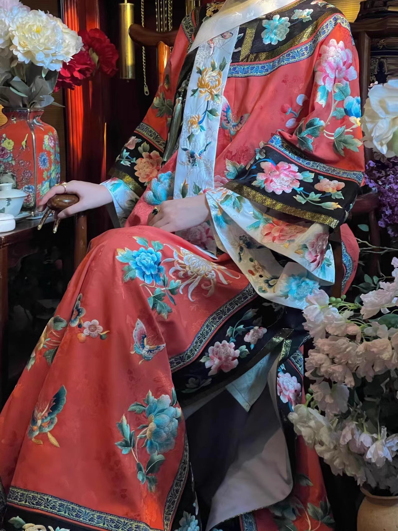 Tihong Haitang 剔红海棠 Picking Red Begonias Ming Dynasty Round Collar Jacket & Mamian Winter Set