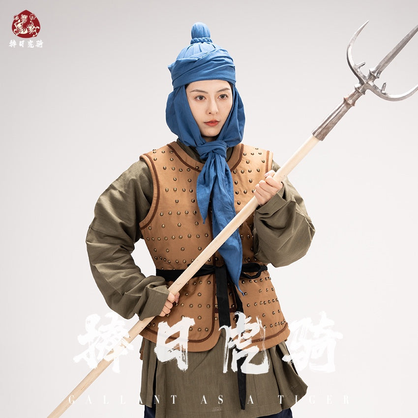 Zhan Qun 战裙 Soldier's Overskirt Ming Dynasty Restoration Cotton Tieli & Hat Set