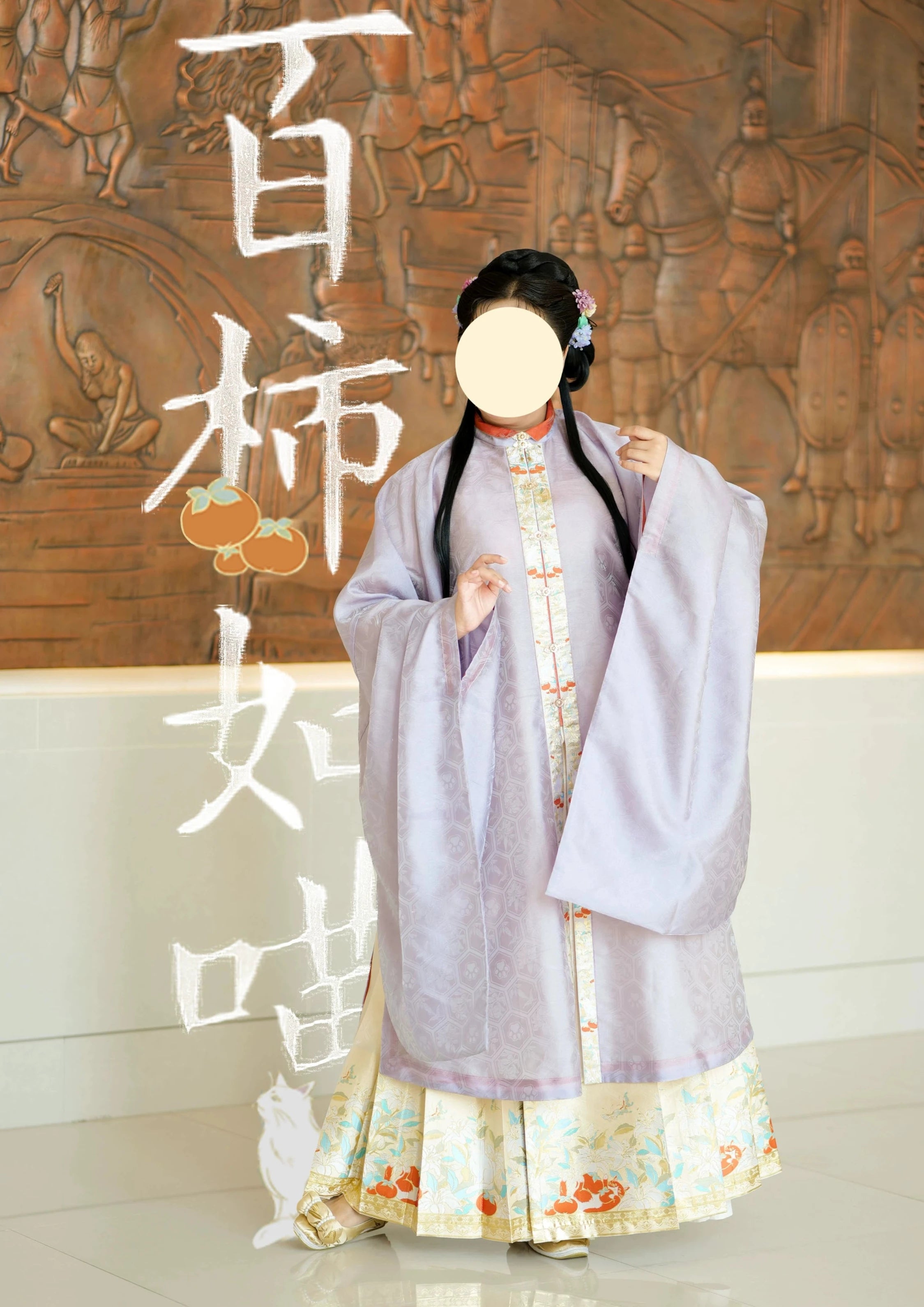 Baishi Rumao 百柿如喵 With 100 Persimmons & Cats Late Ming Plus Size Duijin Changshan & Mamian Set