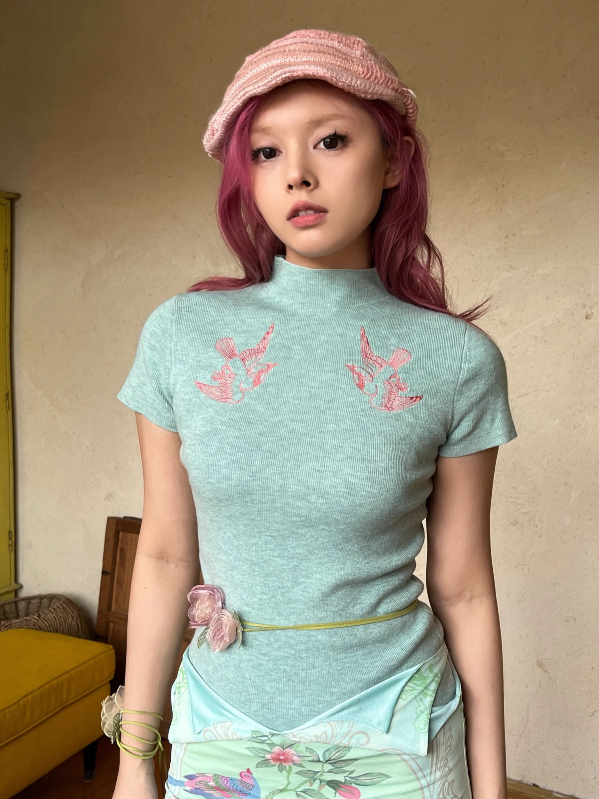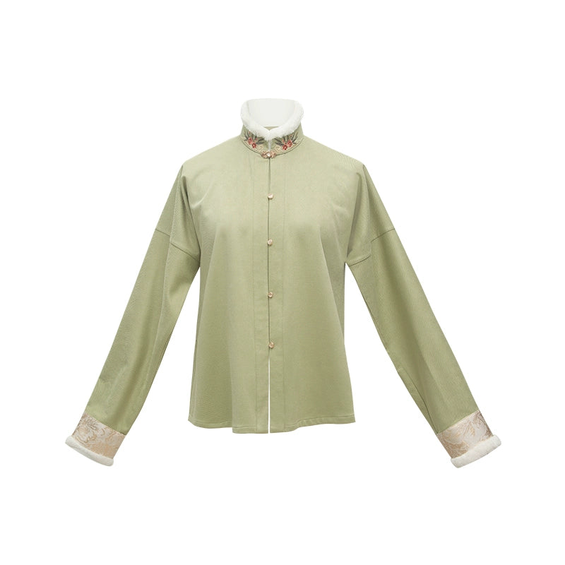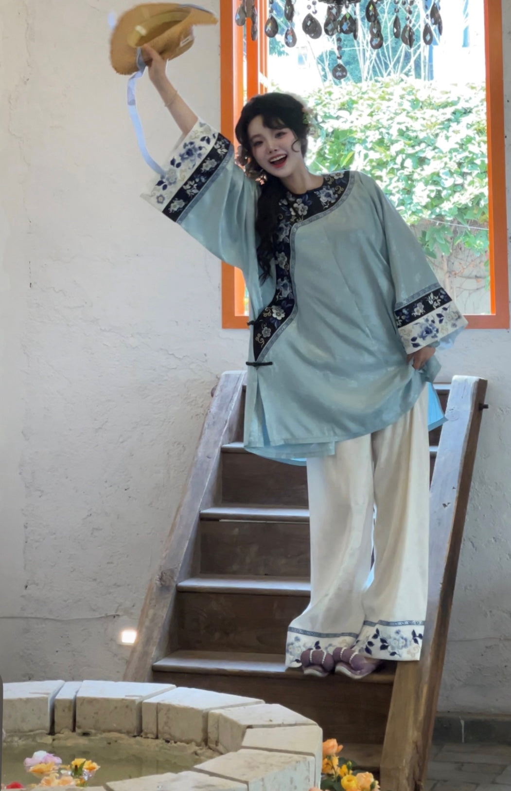 Xue Chuang 雪床 Bed of Snow Qing Han Pastel Embroidered Porcelain Round Collar Top & Pants Set