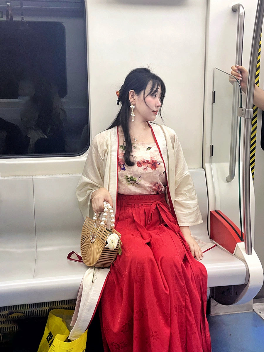 Milk Chocolate 牛奶巧克力 Modernized Ming Plus Size Yuanling Ao Jacket & Midi Mamian Skirt Set