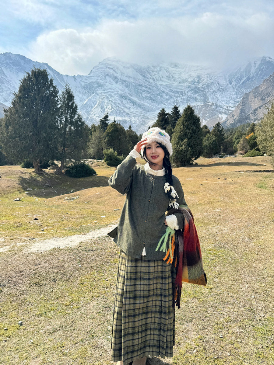 Haiyan 海盐 Sea Salt Modernized Ming Plus Size Knit Standing Collar Top & Easy Wear Mamian Skirt