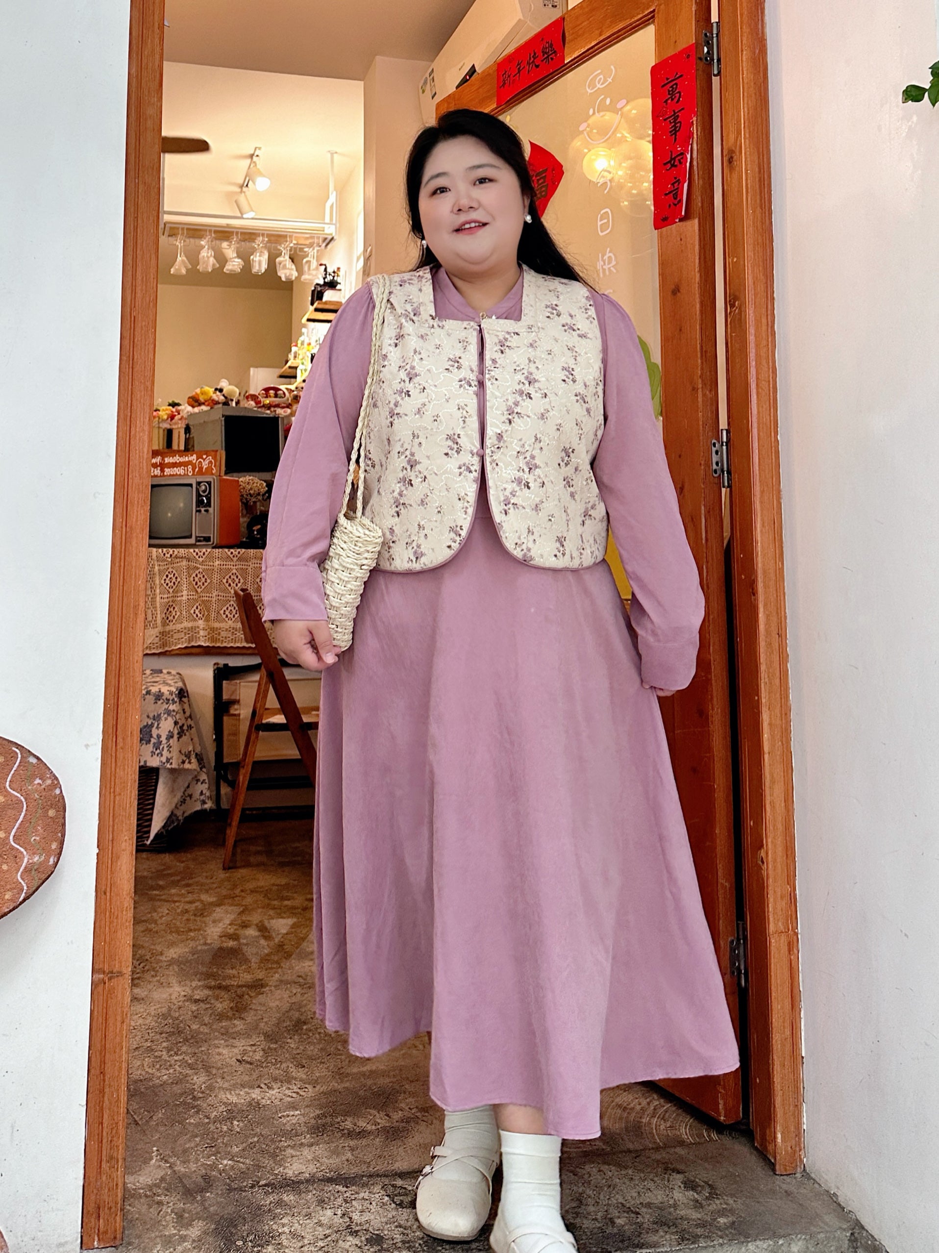 Mu Shan 暮山 Twilight Mountain Modernized Ming Plus Size Bijia Vest & Standing Collar Dress Set
