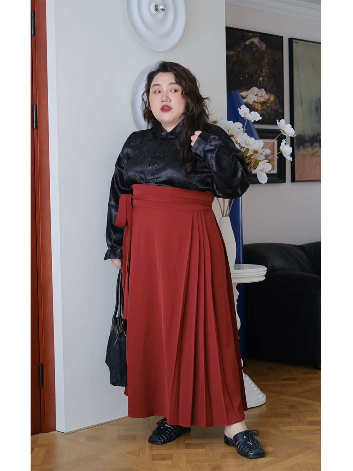 Wumei 妩媚 Charming Modernized Ming Plus Size Cotton Standing Collar Top & Midi Mamian Skirt Set