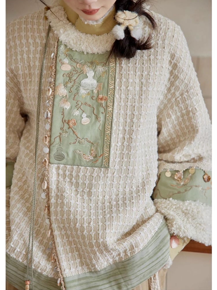 Tihong Haitang 剔红海棠 Picking Red Begonias Ming Dynasty Round Collar Jacket & Mamian Winter Set