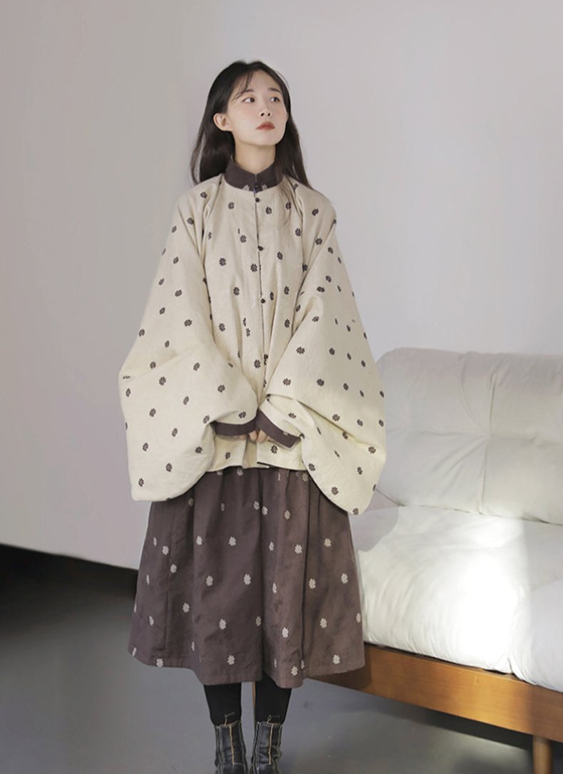 Tihong Haitang 剔红海棠 Picking Red Begonias Ming Dynasty Round Collar Jacket & Mamian Winter Set