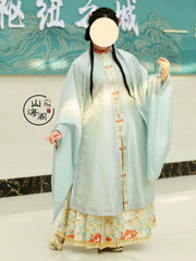 Start with the Duijin Changshan 对襟长衫 (parallel standing collar shirt), available in two delicate shades. Fit for the flower fairy, these long sleeved garments pair great with any Ming skirts.
