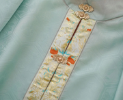 Please hand wash carefully as to not ruin the embroidery, jewels, or buttons. Please air dry the clothes on a hanger. Hand washing and air drying also extends the life of your hanfu. For ironing, please use lowest heat setting or steam out the wrinkles.