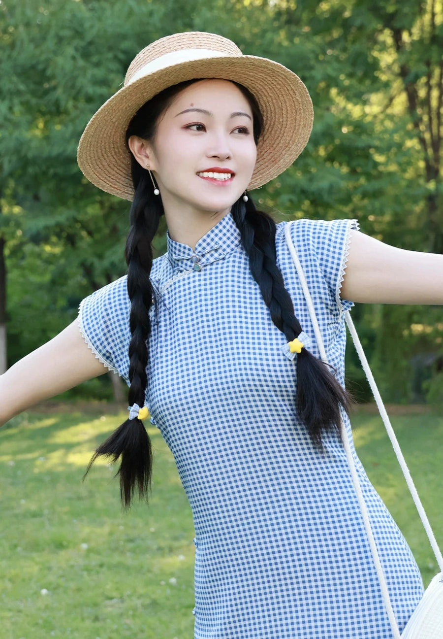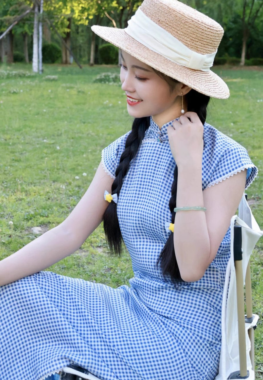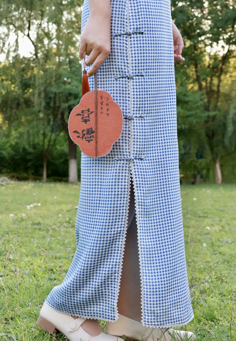 Embrace the charm of the 1930s with this delightful Republic of China-style qipao, designed with a fresh gingham print. Crafted from eco-friendly Lyocell fabric, made from sustainable wood pulp, this qipao is not only stylish but also breathable and comfortable, making it perfect for warm-weather wear.