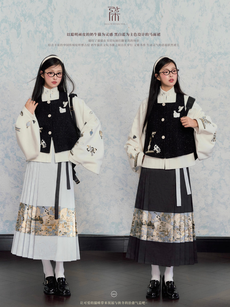 Bogu Maomao 博古猫猫 Antique Kitty Modernized Ming Bijia Vest & Midi Mamian Set