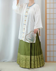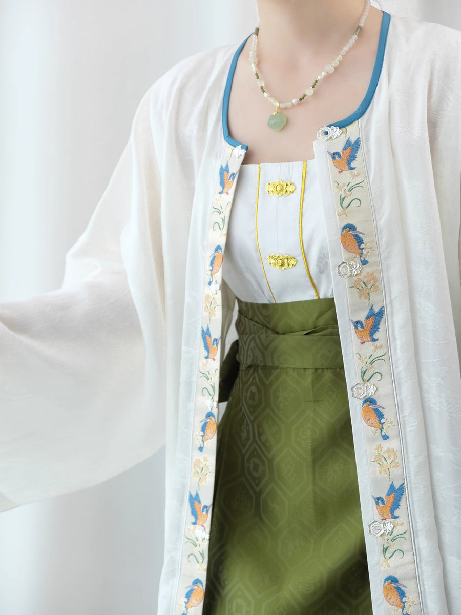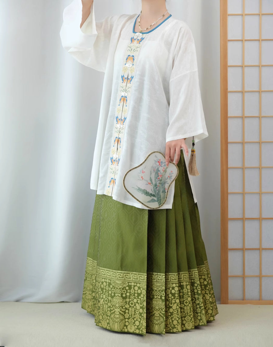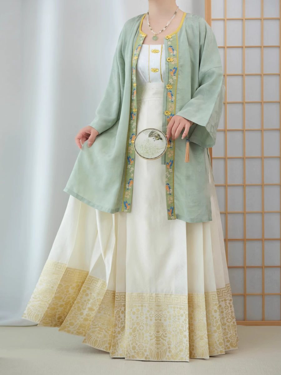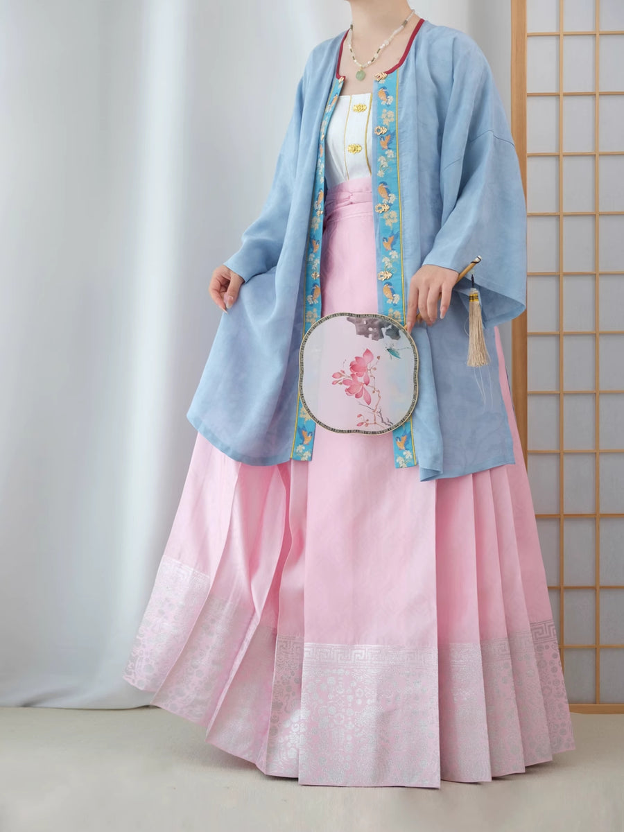 Available in a variety of traditional summer colors, including ivory white, spring green, and sky blue, this Yuanling Duijin Shan allows you to express your personal style while staying true to the essence of Ming Dynasty fashion.