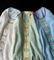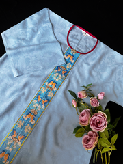 Please hand wash carefully as to not ruin the embroidery, jewels, or buttons. Please air dry the clothes on a flat surface or hanger. Hand washing and air drying also extends the life of your hanfu. Please iron using lowest heat settings or steam out wrinkles.