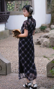 With classic yet elegant diagonal plaid print, the Dan Ceng 单层 Sheer Spring Summer Qipao is a versatile piece that can be styled many different ways.