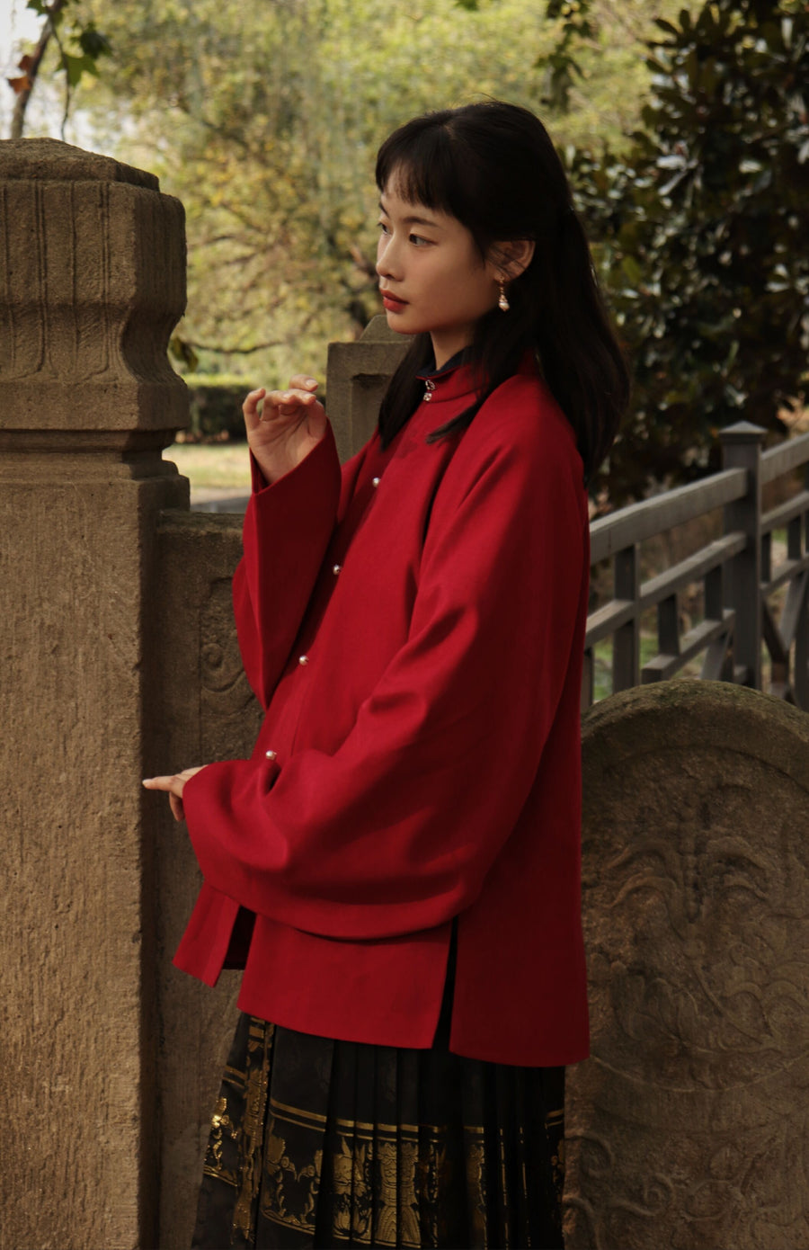 The Pipaxiu 琵琶袖 (lute sleeves) are a refining characteristic of Ming clothing and create a dignified aura, all while remaining comfortable! The sleeves additionally act as great pockets for small items such as your lipstick~